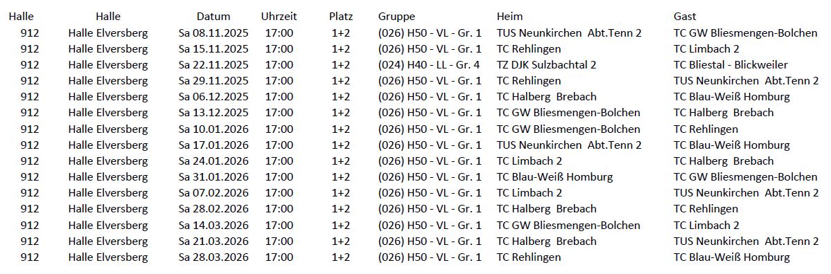 In der Hallensaison 25/26 steht unsere Halle für die Winterhallenrunde der Herren 50 Verbandsliga zur Verfügung.